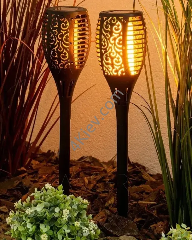 - Естетичний ефект: створюють атмосферу «вогника» у саду, без ризику відкритого вогню.