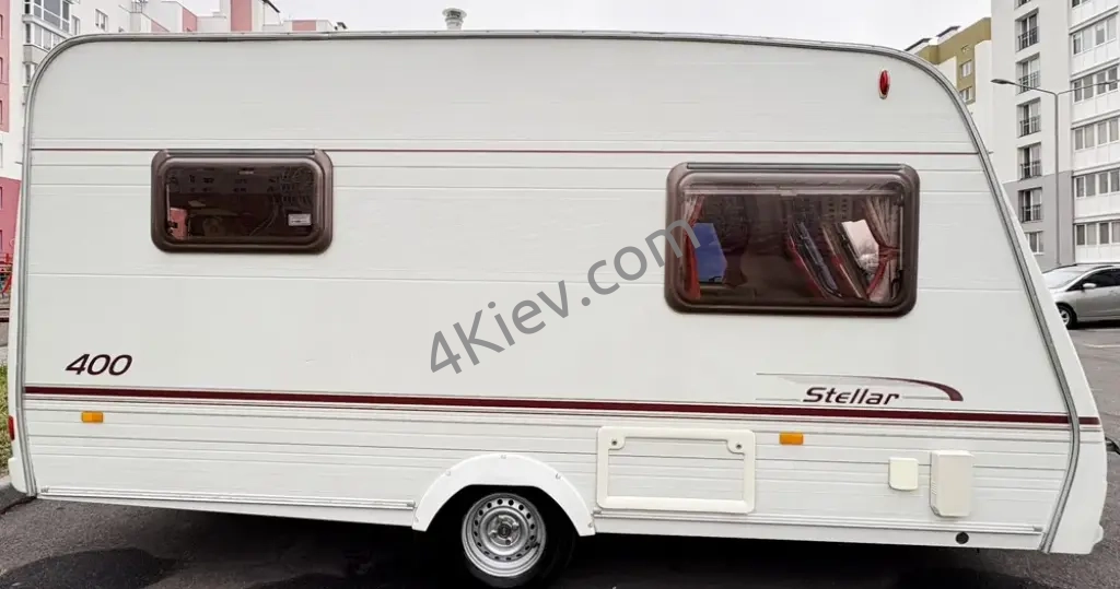 Зовні: міцна конструкція, адаптована для буксирування (якщо це причіп), або мобільна база (якщо кемпер). Ідеально підходить як для дачі на колесах, так і для тривалого проживання у стоянках‑кемпінгах. Матеріали та обладнання розраховані на комфортне використання.