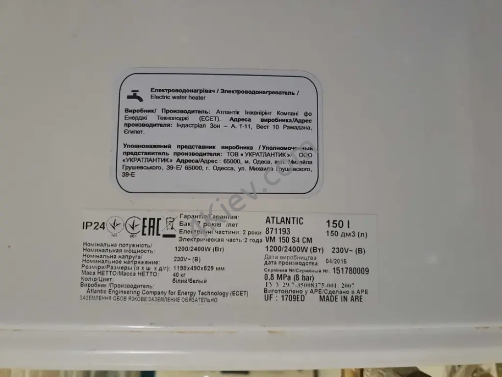 Бойлер Atlantic на 150 літрів, працюючий, у гарному стані.