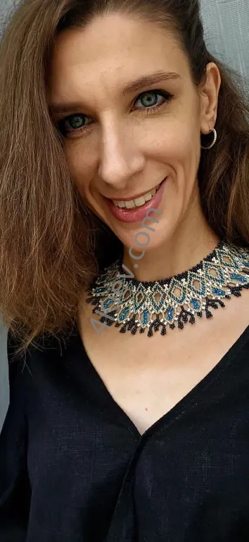 Поєднання чорного, бежевого та синього бісеру додає образу глибини й загадковості 🌙