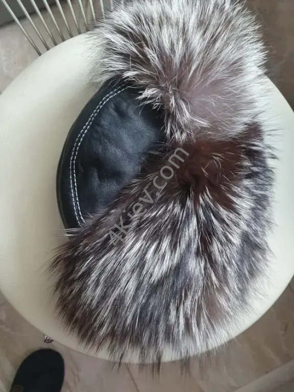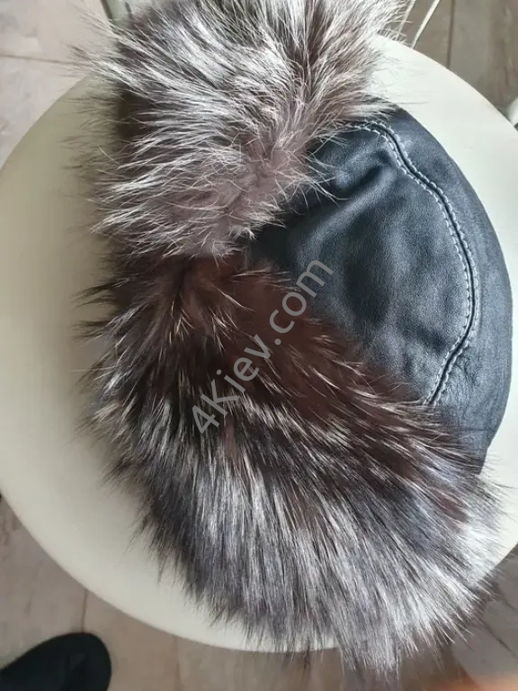 Шапка зимова , тепла, натуральна шкіра с хутром чернобурки В ідіальному стані