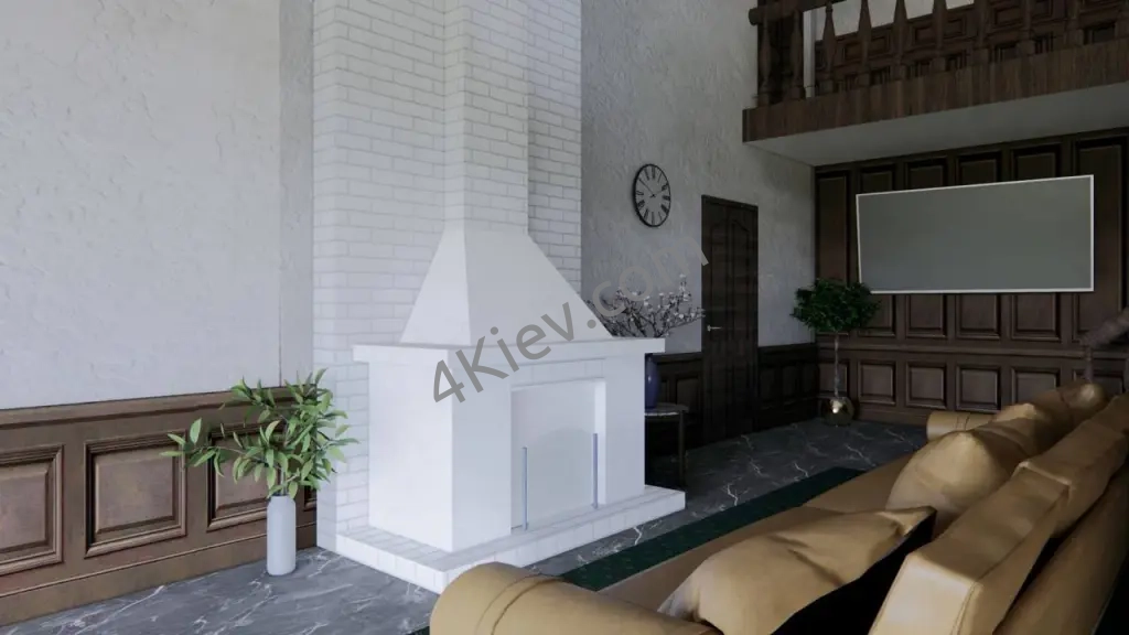 Планування будинку виконано для комфортного проживання. На першому поверсі розташовані: кухня, хол з каміном, дві спальні, кабінет, два санвузли. На другому - велика кімната, більярдний зал.