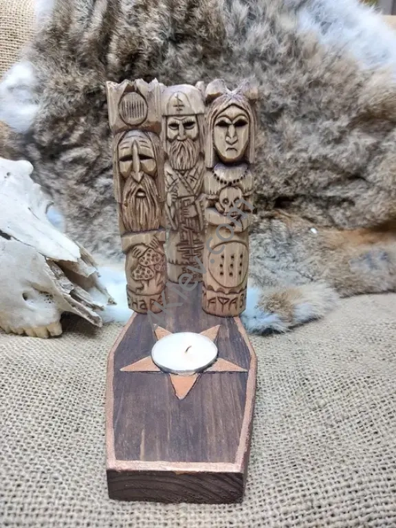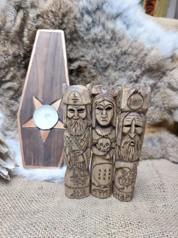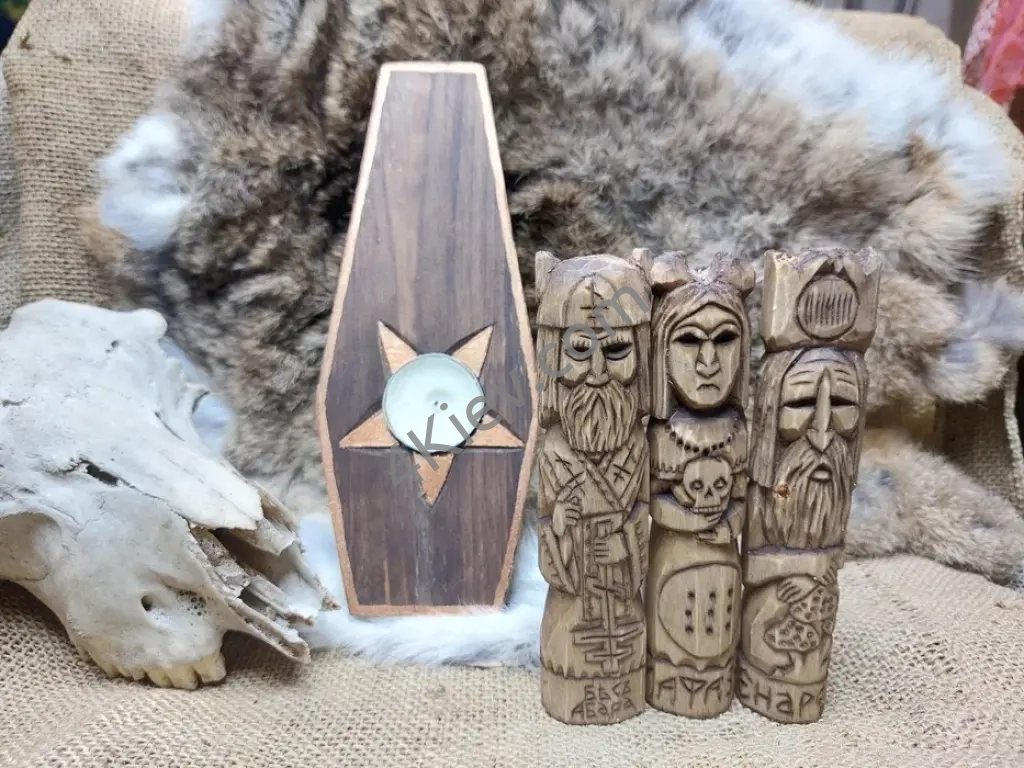 Набір чорного мага . Вирізані з осини. Висота 15 сантиметрів. Поштучно кожна фігурка по 600 грн. Підставка підсвісник 300 грн.