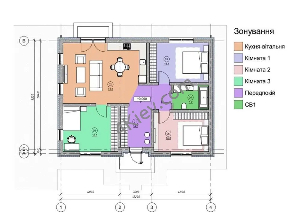 Кухня-вітальня 31.8кв.м. з виходомнатерасу, три просторі окремі спальні, санвузол.